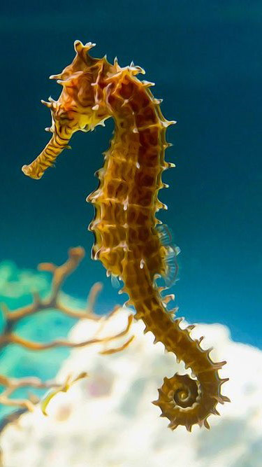 Toward this end, I drew inspiration from shallow-water aquatic life, such as hermit crabs, seahorses, and reef fishes.